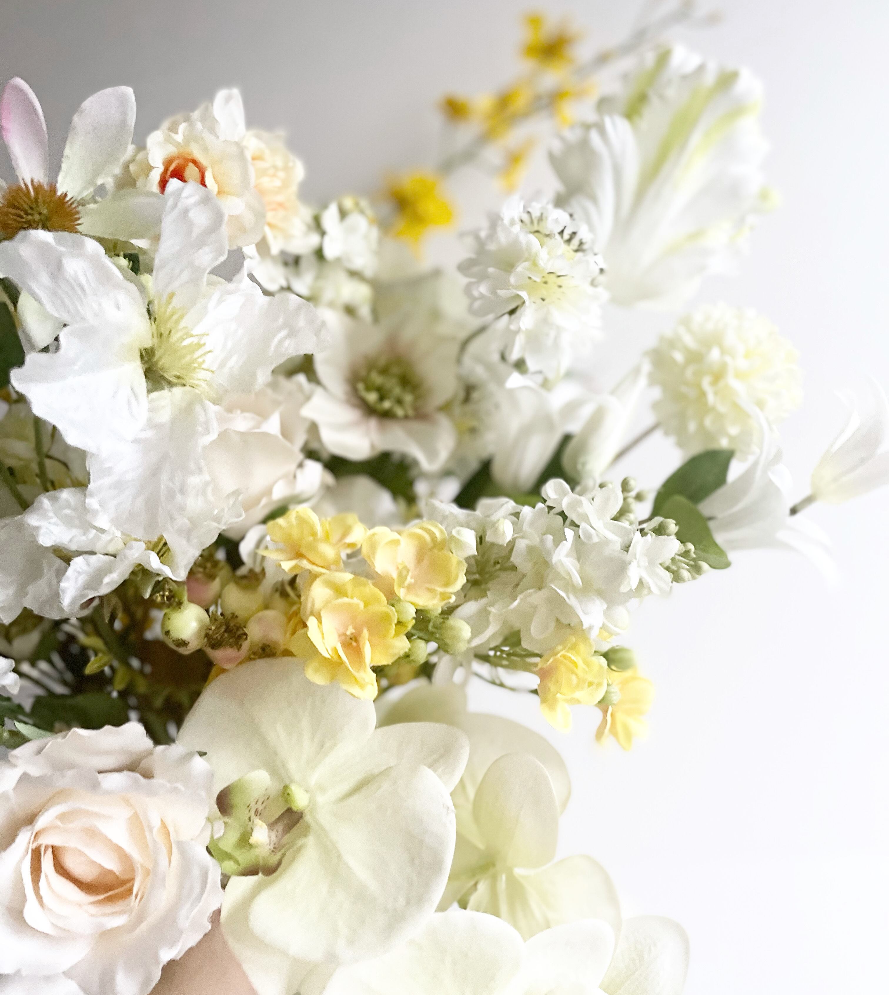 ホワイト×イエローの洗練された爽やかなブーケ。