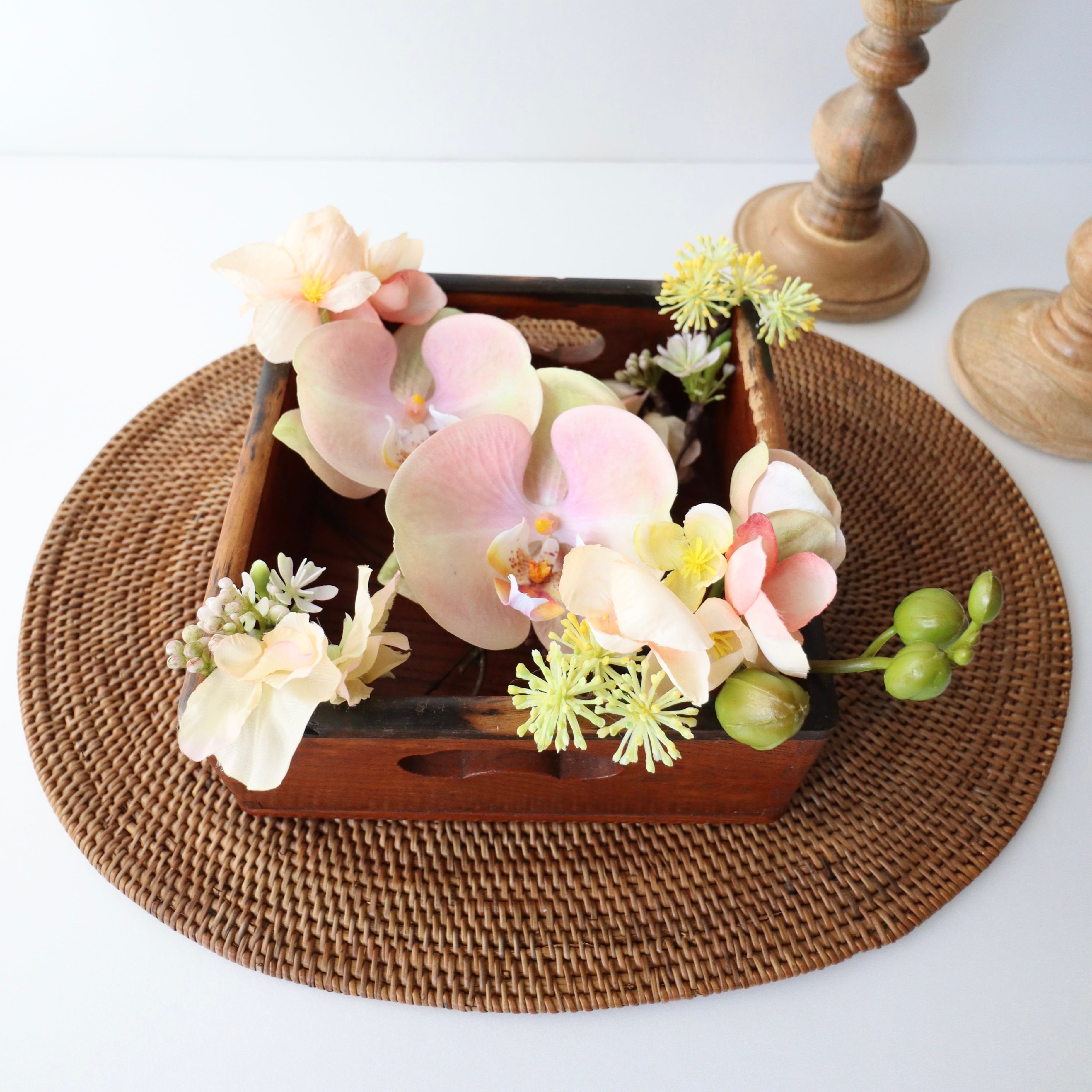 アーティフィシャルフラワーでのお造りなので、